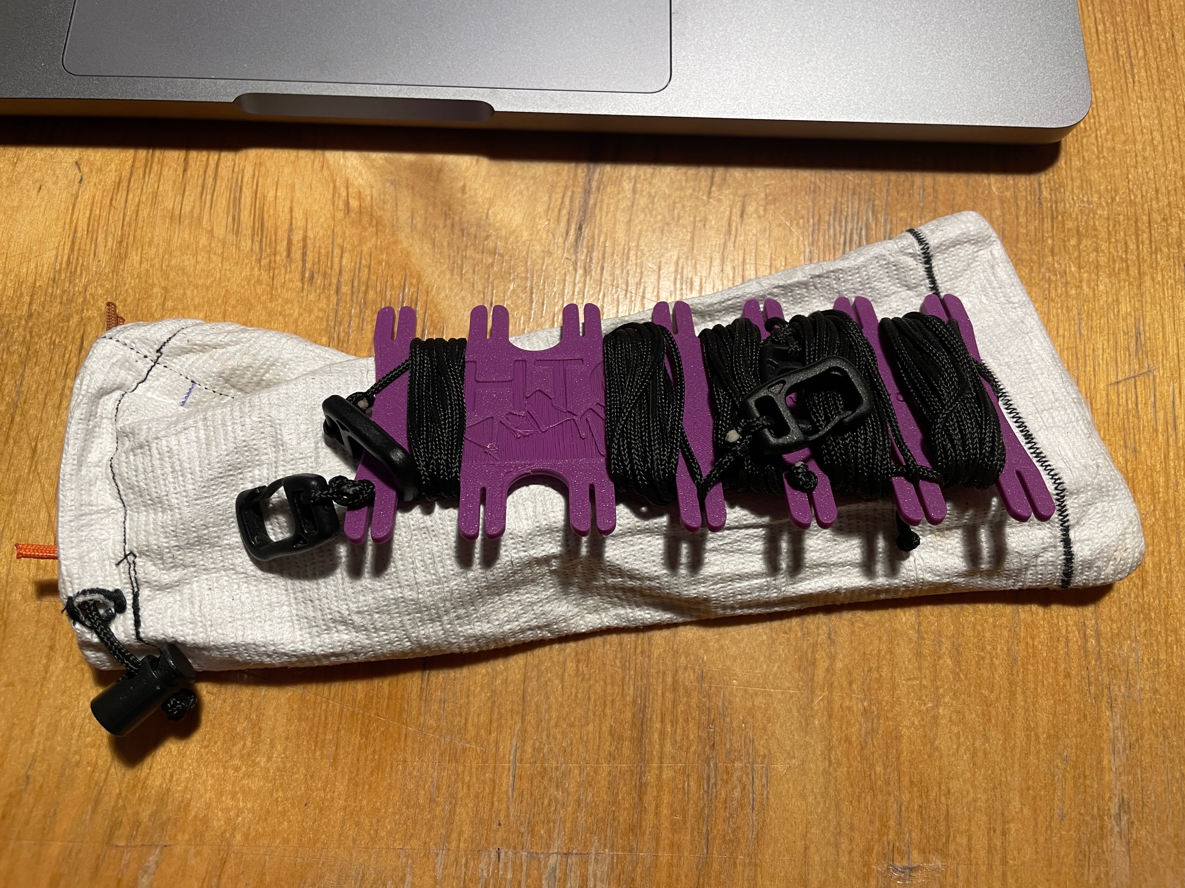 wahlweise mit passenden schnüren um den pocho/tarp aufzubauen (längen folgen)